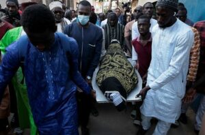 Relatives carry the body of Elhaji Cisse, who was killed during clashes between supporters of Senegal opposition leader Ousmane Sonko and security forces after Sonko was sentenced to prison, during Elhaji Cisse funeral ceremony outside his house, in Dakar, Senegal June 5, 2023. REUTERS/Zohra Bensemra