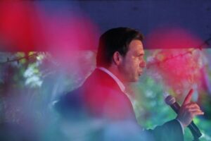 FILE PHOTO: Republican presidential candidate and Florida Governor Ron DeSantis speaks at a campaign event at the Derry-Salem Elks Lodge in Salem, New Hampshire, U.S., June 1, 2023. REUTERS/Brian Snyder