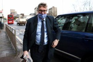 Britain’s Crispin Odey arrives at Hendon Magistrates’ Court to face one charge of indecent assault in Hendon, London, Britain, February 18, 2021. REUTERS/Henry Nicholls