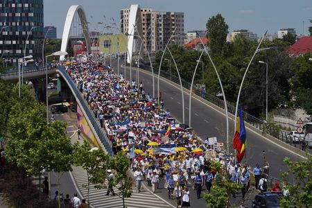 BUCHAREST (Reuters) – Thousands of Romanian teachers marched in the capital Bucharest in protest over pay on Friday as they concluded a third week of strike action.
