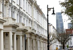 FILE PHOTO: New apartment blocks are seen behind traditional housing in London, Britain, April 16 2023. REUTERS/Peter Nicholls/File Photo