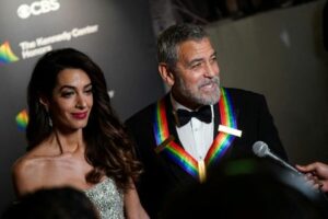 FOTO DE ARCHIVO-El actor George Clooney y su esposa, Amal Clooney, hablan con periodistas en el Centro John F. Kennedy en Washington, D.C., December 4, 2022. REUTERS/Sarah Silbiger/File Photo