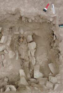 Los restos de una momia, que se cree que pertenecen a la cultura Manchay, que se desarrolló en los valles de Lima entre 1.500 y 1.000 a.C., aparecen en la excavación de un yacimiento prehispánico, en Lima, Perú, el 14 de junio, 2023. REUTERS/Alfredo Galarza