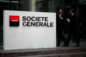 FILE PHOTO: The logo of Societe Generale is seen on the headquarters at the financial and business district of La Defense near Paris, France, February 4, 2020. REUTERS/Benoit Tessier
