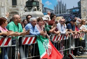 People gather outside the Duomo Cathedral on the day of the funeral of former Italian Prime Minister Silvio Berlusconi, in Milan, Italy June 14, 2023. REUTERS/Claudia Greco