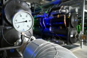 ARCHIV: Wärmepumpensysteme im Inneren eines geothermischen Heizwerks in Schwerin, Deutschland, 28. April 2023. REUTERS/Annegret Hilse