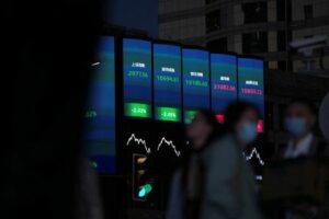 FILE PHOTO: A view of a giant display of stock indexes, following the coronavirus disease (COVID-19) outbreak, in Shanghai, China, October 24, 2022. REUTERS/Aly Song/FILE PHOTO