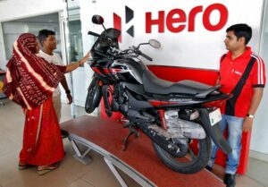 FILE PHOTO: Customers look at a Hero MotoCorp Karizma motorbike at a Hero MotoCorp showroom in the western Indian city of Ahmedabad April 26, 2013. REUTERS/Amit Dave/File Photo