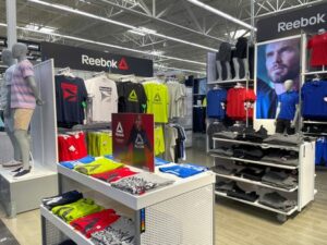 FILE PHOTO: Signage and clothes of the brand Reebok are seen at a Walmart’s newly remodeled store, in Teterboro, New Jersey, U.S., June 7, 2023. REUTERS/Siddharth Cavale