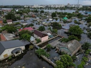 FOTO DE ARCHIVO. Una vista aérea muestra una zona inundada tras la rotura de la presa de Nova Kajovka, en medio del ataque de Rusia a Ucrania, en Jersón, Ucrania. 10 de junio de 2023. REUTERS/Inna Varenytsia