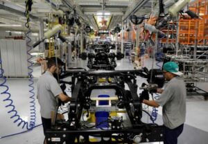 FOTO DE ARCHIVO: Empleados trabajan en la nueva línea de montaje para camiones de la planta de camiones y autobuses de Mercedes Benz en Sao Bernardo do Campo, Brasil. 27 de marzo, 2018. REUTERS/Paulo Whitaker