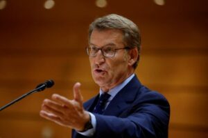FILE PHOTO: Spain’s opposition People’s Party (PP) leader Alberto Nunez Feijoo speaks during a session at the Spanish Senate in Madrid, Spain, September 6, 2022. REUTERS/Susana Vera/File Photo/File Photo