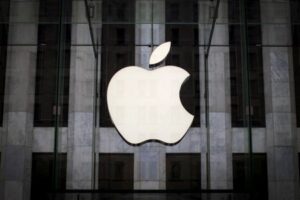 FILE PHOTO: An Apple logo hangs above the entrance to the Apple store on 5th Avenue in the Manhattan borough of New York City, July 21, 2015. REUTERS/Mike Segar/File Photo