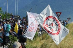 Activists take part in a protest against the Lyon-Turin rail link between France and Italy, in Les Chavannes-en-Maurienne, France, June 17, 2023. REUTERS/Denis Balibouse