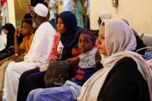 People, who were evacuated from Sudan by an Iraqi military aircraft, are seen at Baghdad International Airport in Baghdad, Iraq, June 18, 2023. REUTERS/Saba Kareem