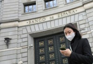 FOTO DE ARCHIVO. Una mujer pasa por delante de una sede del Banco de España, en Barcelona, España. 14 de marzo de 2020. REUTERS/Nacho Doce