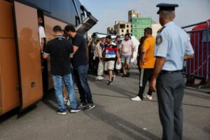 Migrants, survivors of a deadly shipwreck after a boat capsized at open sea off Greece, board a bus as they are being transferred to Athens from the port of Kalamata, Greece, June 16, 2023. REUTERS/Stelios Misinas