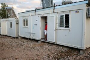 A survivor of a deadly migrant shipwreck at open sea off Greece, stands at the door of a shelter, at a reception and identification camp in Malakasa, Greece, June 17, 2023. REUTERS/Stelios Misinas