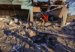 FILE PHOTO: An investigator works next to a crater in the site of recent shelling in the course of Russia-Ukraine conflict, in the town of Volnovakha in the Donetsk region, Russian-controlled Ukraine, March 13, 2023. REUTERS/Alexander Ermochenko/File Photo