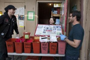 FILE PHOTO: (L-R) Shilo Murphy, Misty Kohal, and Jeff Sablosky prepare to open the People’s Harm Reduction Alliance, a needle-exchange program, in Seattle, Washington April 30, 2015. REUTERS/David Ryder/File Photo