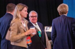 FILE PHOTO: Howard Buffett, a director at Berkshire Hathaway, greets other directors before the start of the company’s annual meeting in Omaha, Nebraska, U.S. May 6, 2023. REUTERS/Rachel Mummey/File Photo