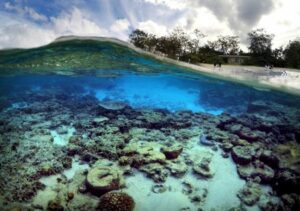 FILE PHOTO: Tourists stand in front of huts that form part of the Lady Elliot Island Eco Resort where a turtle digs for food amongst the coral in the island’s lagoon, north-east of the town of Bundaberg in Queensland, Australia, June 9, 2015. REUTERS/David Gray/File Photo
