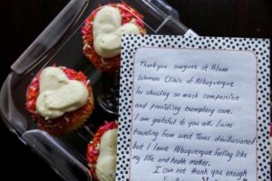 A box of cupcakes and a thank-you note for the clinic staff sit on the break room table at Alamo Women’s Clinic in Albuquerque, New Mexico, U.S., January 11, 2023. On June 24, 2022, a year ago this week, the U.S. Supreme Court overturned Roe v. Wade and stripped away a nationwide right to abortion. Dozens of clinics closed, forcing patients to travel thousands of miles to end pregnancies. These included clinics of Alan Braid and his daughter Andrea Gallegos in San Antonio, Texas, and Tulsa, Oklahoma. Braid, an abortion provider since 1972, and Gallegos, manager of their clinics, decided to uproot their families in Texas to open the clinics in New Mexico and Illinois, two states where abortion remains legal. REUTERS/Evelyn Hockstein