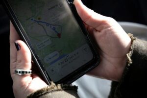 Jen, who drove from Texas to New Mexico for a medical abortion at Alamo Women’s Clinic, checks her GPS before making the over 600-mile drive back to Texas, in Albuquerque, New Mexico, U.S., January 11, 2023. On June 24, 2022, a year ago this week, the U.S. Supreme Court overturned Roe v. Wade and stripped away a nationwide right to abortion. Dozens of clinics closed, forcing patients to travel thousands of miles to end pregnancies. REUTERS/Evelyn Hockstein