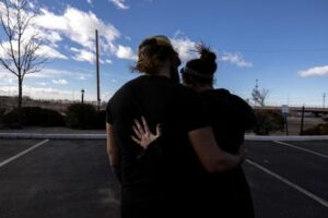 Jen and her boyfriend, who came to Alamo Women’s Clinic in New Mexico for a medical abortion, embrace before leaving New Mexico for the over 600-mile drive back to Texas, in Albuquerque, New Mexico, U.S., January 11, 2023. On June 24, 2022, a year ago this week, the U.S. Supreme Court overturned Roe v. Wade and stripped away a nationwide right to abortion. Dozens of clinics closed, forcing patients to travel thousands of miles to end pregnancies. REUTERS/Evelyn Hockstein