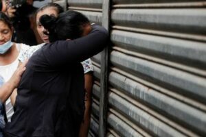 The relative of a victim of the deadly prison riot at the Centro Femenino de Adaptacion Social (CEFAS) women’s prison reacts outside a morgue in Tegucigalpa, Honduras, June 21, 2023. REUTERS/Fredy Rodriguez