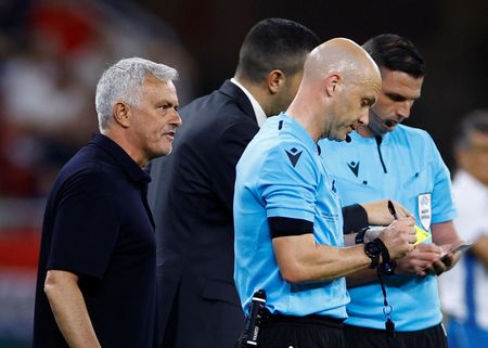 21 jun (Reuters) – El entrenador de la S Roma, el portugués José Mourinho, fue suspendido para sus próximos cuatro partidos de la Europa League debido a que utilizó un lenguaje abusivo para referirse al árbitro Anthony Taylor, y el club fue multado, informó el miércoles la UEFA.