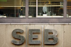 An employee looks out the window of an SEB bank office in downtown Stockholm, Sweden June 4, 2009. REUTERS/Bob Strong/File Photo