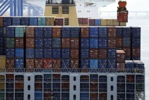 Crane carries a container from a ship at the PNC