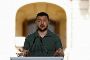 Ukraine’s President Volodymyr Zelenskiy attends a joint press conference with African leaders, amid Russia’s attack on Ukraine, in Kyiv, Ukraine June 16, 2023. REUTERS/Valentyn Ogirenko/File photo