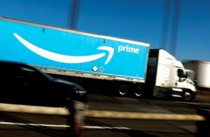 Amazon truck during Amazon’s two-day “Prime Early Access Sale” shopping