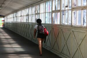 A visitor walks down the original walkway from the dock, that was used by Windrush migrants, during a celebration to mark the 75th anniversary of the arrival of HMT Empire Windrush, in Tilbury, Britain, June 22, 2023. REUTERS/Susannah Ireland