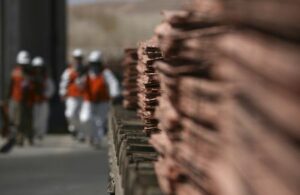 FOTO DE ARCHIVO. Cátodos de cobre apilados en una planta