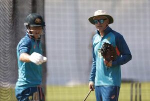 FILE PHOTO: Cricket – Ashes – First Test – Australia Practice – Edgbaston Cricket Ground, Birmingham, Britain – June 13, 2023 Australia head coach Andrew McDonald and Marnus Labuschagne during practice Action Images via Reuters/Andrew Couldridge/File Photo
