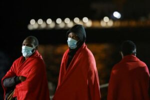 Migrantes a la espera para desembarcar de un buque guardacostas español, en el puerto de Arguineguín, en la isla de Gran Canaria, España 22 de junio 2023. REUTERS/Borja Suárez