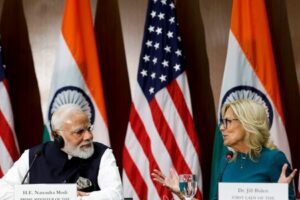 U.S. First Lady Jill Biden and Indian Prime Minister Narendra Modi visit the National Science Foundation in Alexandria, Virginia, U.S., June 21, 2023. REUTERS/Evelyn Hockstein