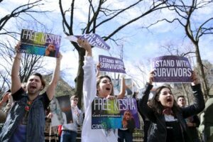 FILE PHOTO: Protesters demonstrate in support of the singer Kesha outside of Sony headquarters in New York March 11, 2016. REUTERS/Lucas Jackson/File Photo