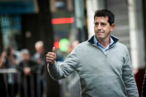 Eduardo Enrique “Wado” de Pedro saluda al arribar a una reunión del peronismo en Buenos Aires, luego de que el presidente Alberto Fernández declinara competir en los comicios de 2023, Argentina, April 21, 2023. REUTERS/Mariana Nedelcu