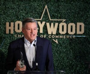 Netflix Co-CEO Ted Sarandos accepts the 2022 Economic Development Visionary Award during the Hollywood Chamber of Commerce 2022 Economic Development Summit in Los Angeles, California, U.S., August 25, 2022. REUTERS/Mario Anzuoni/FILE PHOTO