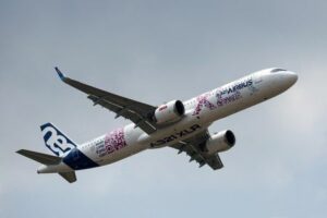An Airbus A321 XLR aircraft performs a flying display at the 54th International Paris Airshow at Le Bourget Airport near Paris, France, June 21, 2023. REUTERS/Benoit Tessier