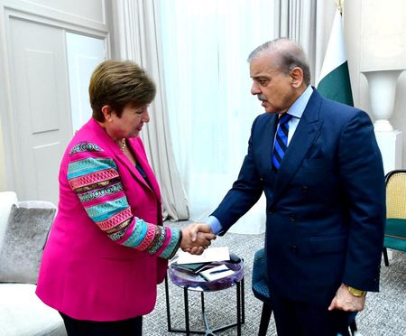 (Reuters) -Pakistan’s Prime Minister Shehbaz Sharif on Thursday briefed International Monetary Fund’s managing director Kristalina Georgieva on the economic outlook of the cash-strapped South Asian nation, hoping for the release of critical stalled funds.