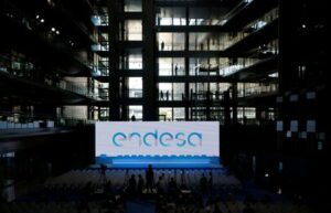 FILE PHOTO: The logo of Spanish power company Endesa is seen on a banner inside their headquarters in Madrid, Spain, April 26, 2016. REUTERS/Andrea Comas