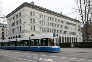 The Swiss National Bank (SNB) building is seen near the Limmat river in Zurich, Switzerland March 23, 2023. REUTERS/Denis Balibouse/FILE PHOTO