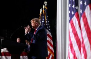 Former U.S. President Donald Trump delivers remarks during an event following his arraignment on classified document charges, at Trump National Golf Club, in Bedminster, New Jersey, U.S., June 13, 2023. REUTERS/Amr Alfiky