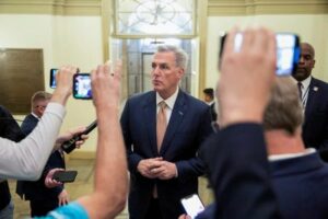 FILE PHOTO: U.S. House Speaker Kevin McCarthy (R-CA) speaks to reporters on Capitol Hill in Washington, U.S., June 8, 2023. REUTERS/Amanda Andrade-Rhoades//File Photo
