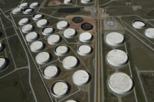 FILE PHOTO: Crude oil storage tanks are seen from above at the Cushing oil hub, in Cushing, Oklahoma, March 24, 2016. REUTERS/Nick Oxford/File Photo